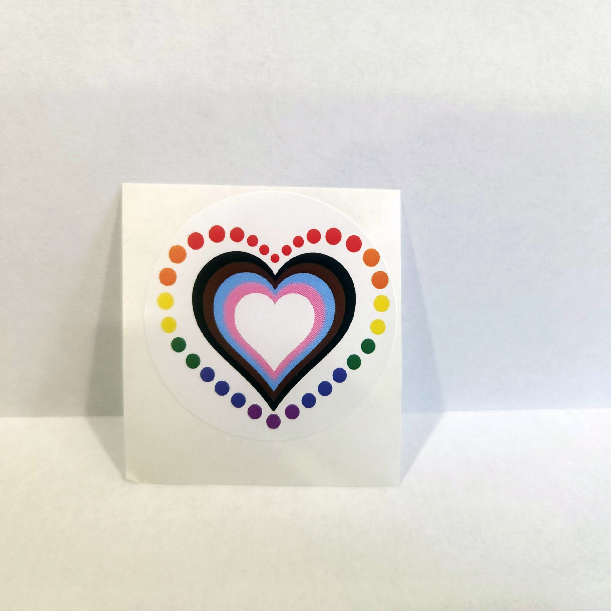 What better time to show that pride than now? These cute little stickers are perfect to place anywhere you see fit. This hand-drawn sticker is perfect for any occasion. They feature the progressive pride flag and the traditional pride flag.