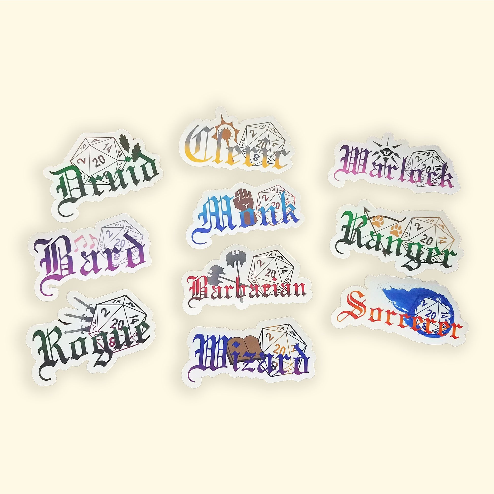 Looking for a way to show your nerdy side? Wanting to honor your favorite class in D&D? How about a perfect gift for that DM or Player? Well, these stickers are perfect. These are perfect for any occasion. Hand-drawn and designed for that fun-loving Dungeons and Dragons player.
