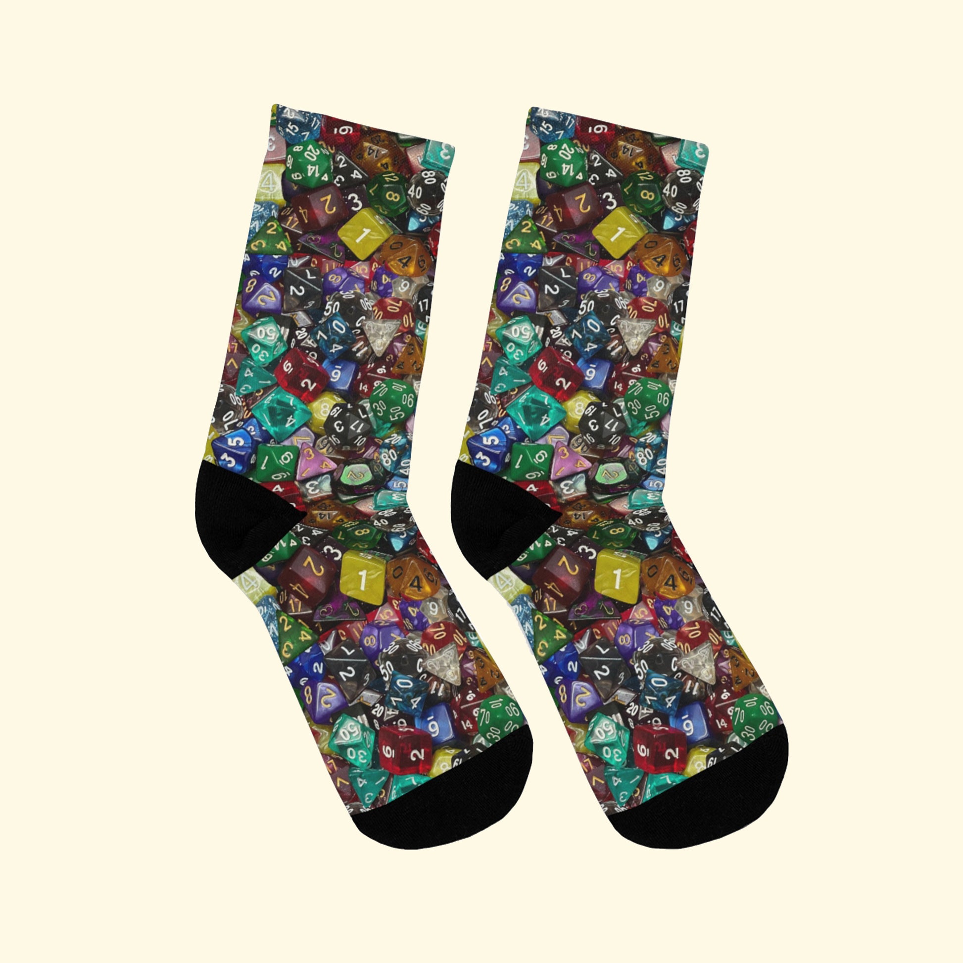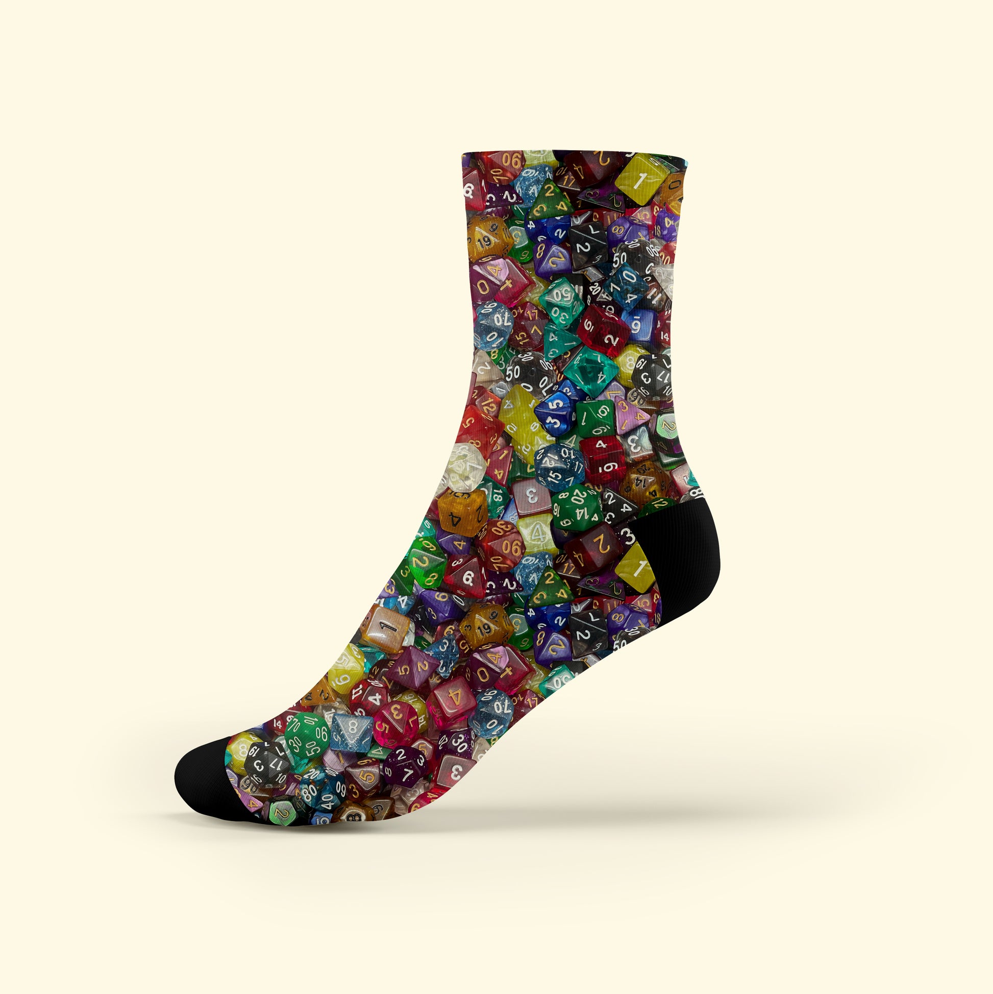 Yes, I do need all these dice. So much so that they have spilled out onto my clothing. This one size fits all socks are perfect for the summer, spring, and fall. They are lightweight and so soft.
