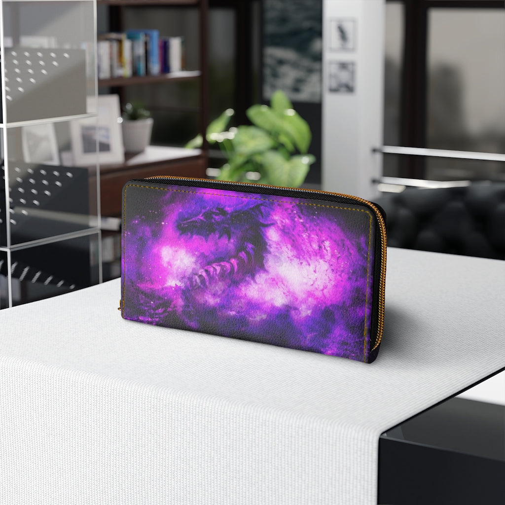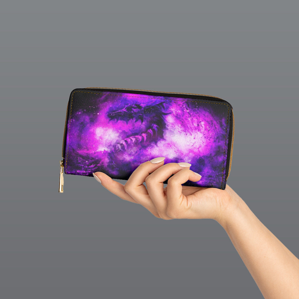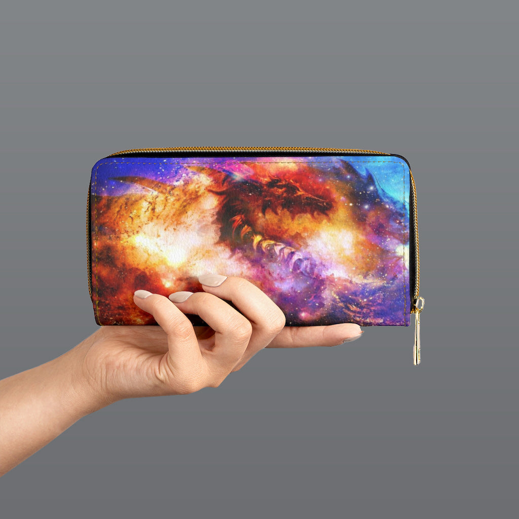 Grab your pet celestial dragon as you run out the door. The Celestial Dragon Wallet features beautifully drawn dragon art. This wallet will become something you love and others will as well. It is perfect for carrying around all your credit cards, cash, and driver's license. It is unique and eye-catching.