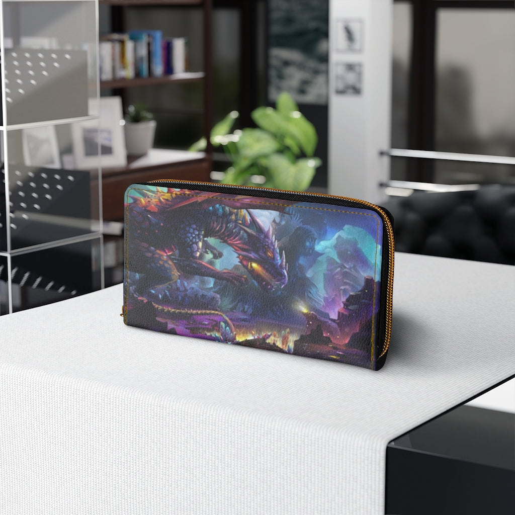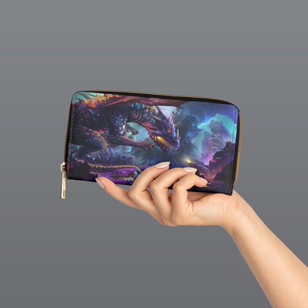 Grab your pet crystal dragon as you run out the door. The Crystal Dragon Wallet features beautifully drawn dragon art. This wallet will become something you love and others will as well. It is perfect for carrying around all your credit cards, cash, and driver's license. It is unique and eye-catching.